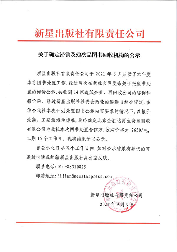 關(guān)于確定滯銷及殘次品圖書回收機(jī)構(gòu)的公示
